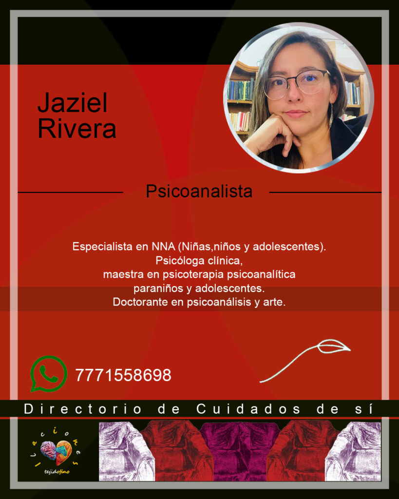 Psicóloga clínica, maestra en psicoterapia psicoanalítica para niños y adolescentes. Doctorante en psicoanálisis y arte. Especialista en la atención de niñas, niños, adolescentes y padres de familia.